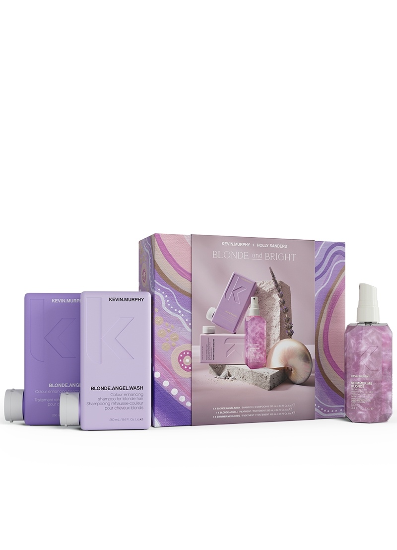 Le KEVIN.MURPHY BLOND AND BRIGHT Coffret Cadeau est une édition spéciale fêtes qui ravive, illumine et protège les cheveux blonds, qu’ils soient naturels ou colorés. Parfait comme cadeau dans un écrin élégant – prêt à offrir en cadeau – ou comme rituel complet pour sublimer sa blondeur à un prix avantageux. BLONDE.ANGEL WASH ravive les tons froids avec un nettoyage doux et neutralisant – et dans ce coffret, il est offert (valeur 30,25 €). BLONDE.ANGEL RINSE nourrit et adoucit pour une finition éclatante et soyeuse. SHIMMER-ME.BLONDE est un soin léger infusé de pigments illuminateurs qui font briller les cheveux sans les alourdir. Offrez (ou offrez-vous) un soin professionnel pour cheveux blonds dans un coffret élégant – aucun emballage supplémentaire nécessaire. Profitez de cette offre exclusive et révélez une blondeur éclatante, lumineuse et parfaitement fraîche. Des cheveux blonds éclatants – soin festif et lumineux