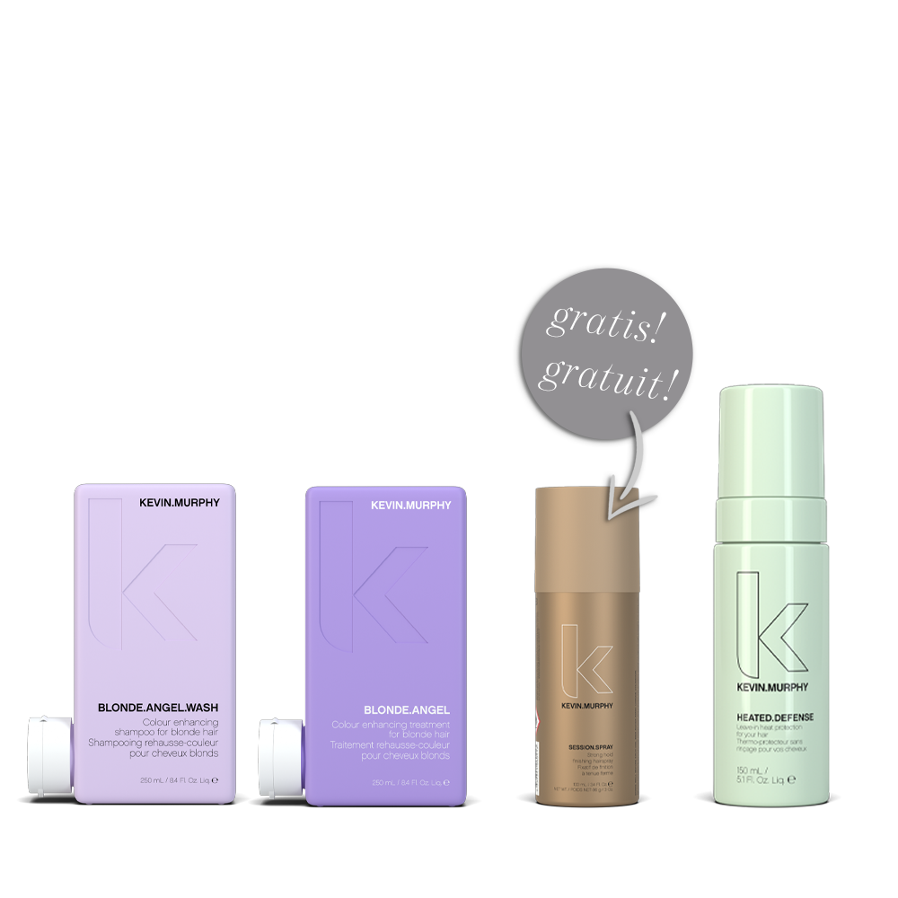 Offrez à vos cheveux blonds le soin, la protection et le coiffage ultimes avec l’exclusif Coffret Blonde Brushing de Kevin Murphy.