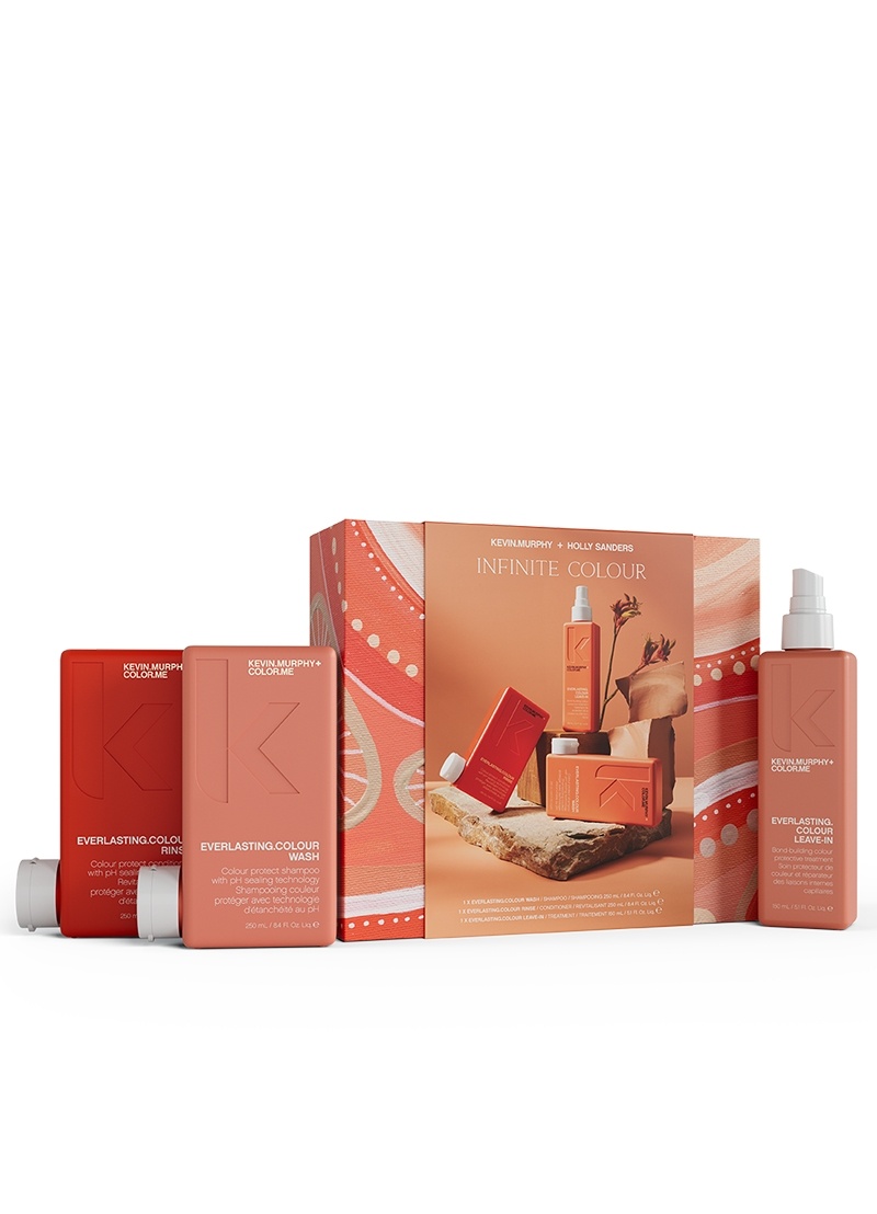 Le KEVIN.MURPHY INFINITE COLOUR Coffret Cadeau est une édition spéciale fêtes conçue pour protéger les cheveux colorés, prolonger leur brillance et renforcer la fibre capillaire. Parfait comme cadeau dans un écrin élégant – prêt à offrir en cadeau – ou comme rituel complet de soin couleur à un prix avantageux. EVERLASTING.COLOUR WASH nettoie en douceur et protège la couleur – et dans ce coffret, il est offert (valeur 33,50 €). EVERLASTING.COLOUR RINSE scelle la cuticule, adoucit et apporte une brillance éclatante. EVERLASTING.COLOUR LEAVE-IN est un soin léger sans rinçage qui protège contre les agressions extérieures et la chaleur, pour une couleur durablement vive et des cheveux sains. Offrez ou offrez-vous un rituel de soin couleur professionnel. Présenté dans un élégant coffret cadeau – aucun emballage supplémentaire nécessaire. Profitez de cette offre exclusive et gardez des cheveux lumineux, lavage après lavage. Protégez votre couleur, prolongez votre éclat – festif et avantageux