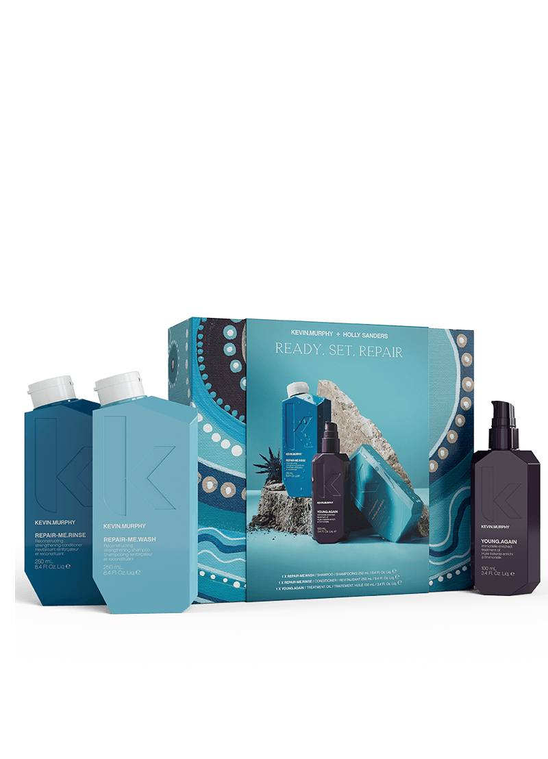 Le KEVIN.MURPHY READY, SET, REPAIR Coffret Cadeau est une édition spéciale fêtes conçue pour réparer, renforcer et lisser les cheveux abîmés ou traités chimiquement. Parfait comme cadeau dans un écrin élégant – prêt à offrir en cadeau – ou comme rituel réparateur complet à un prix avantageux. REPAIR-ME.WASH nettoie en douceur et soutient la réparation – et dans ce coffret, il est offert (valeur 36,75 €). REPAIR-ME.RINSE nourrit intensément, réduit la casse et rend les cheveux plus souples. YOUNG.AGAIN est le soin de finition iconique qui adoucit, apporte éclat et protège des agressions extérieures pour des cheveux d’apparence saine. Offrez (ou offrez-vous) un rituel de réparation capillaire digne du salon dans un coffret élégant – aucun emballage supplémentaire nécessaire. Profitez de cette offre exclusive et redonnez à vos cheveux abîmés force, douceur et brillance. Puissance réparatrice pour des cheveux renforcés – festif et avantageux