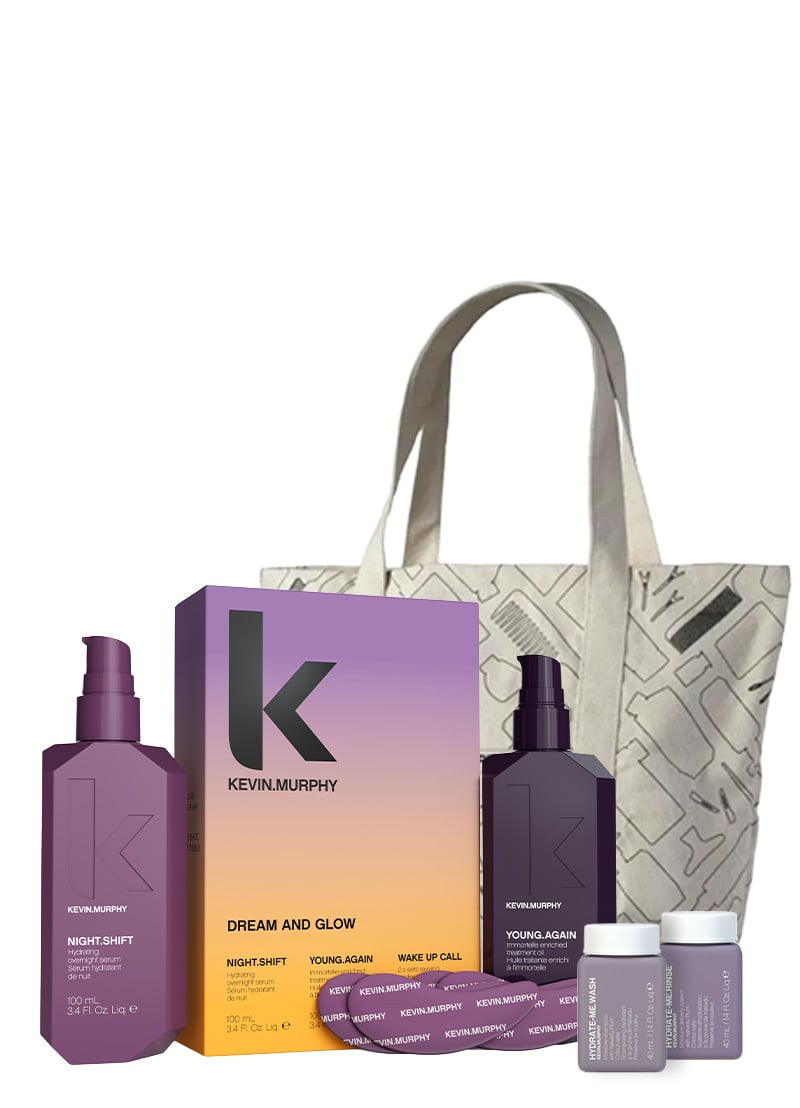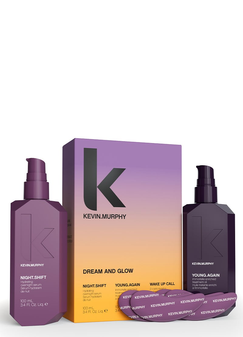 De KEVIN.MURPHY DREAM& GLOW BOX is een exclusieve voordeelset die je haar dag en nacht verzorgt. Overdag voedt en beschermt YOUNG.AGAIN het haar tegen hitte en dagelijkse invloeden, terwijl NIGHT.SHIFT ’s nachts intens hydrateert en helpt herstellen wat je haar overdag te verduren krijgt.